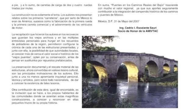 "Los puentes constituyen magníficos ejemplos, cuya memoria debe preservarse para tener una mayor comprensión histórica del significado e importancia de los pasos que se han dado para la construcción y mejoramiento de las carreteras.”